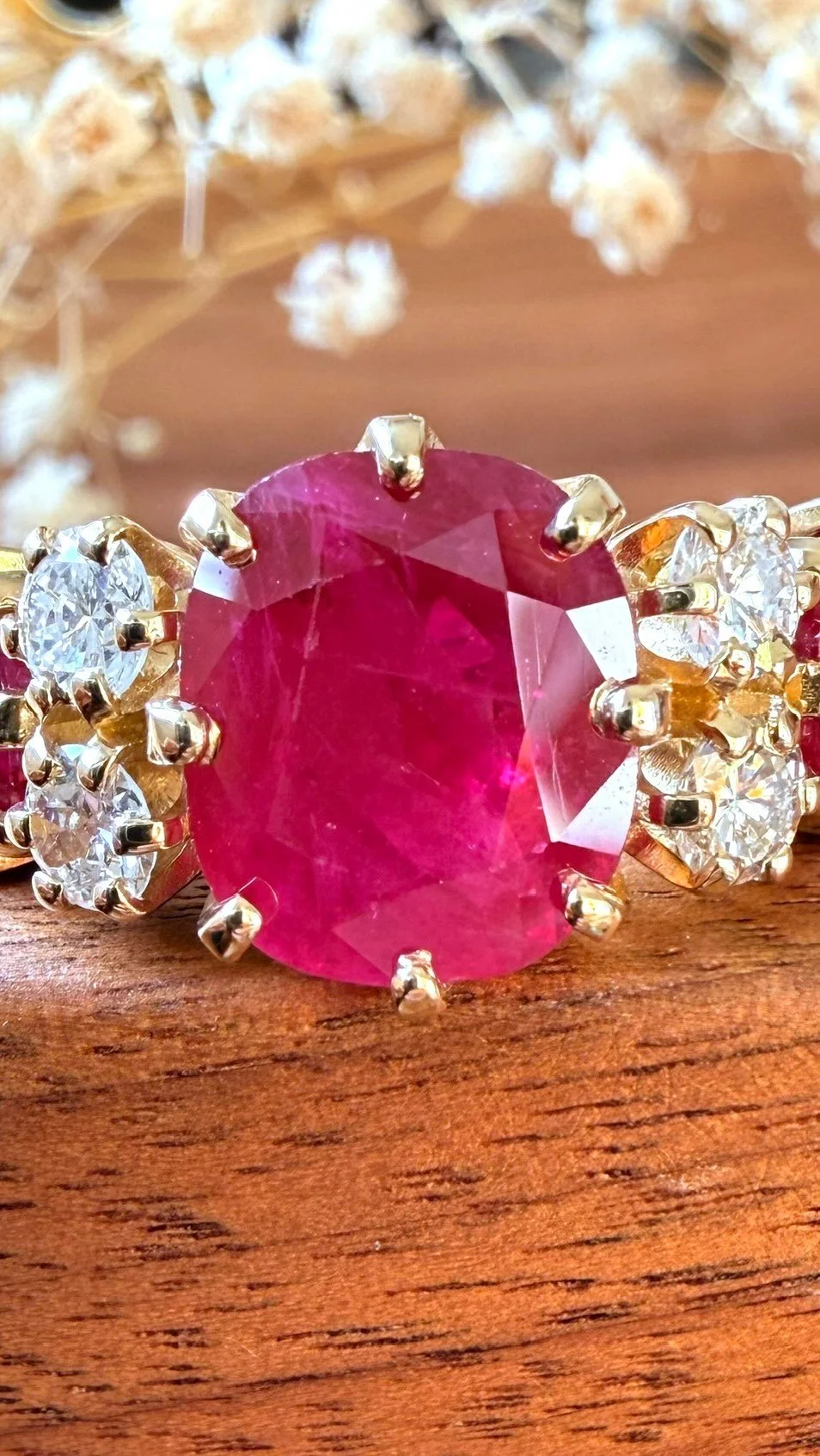 De forme ovale, elle est ornée en son centre d’un saphir de taille ovale et de couleur bleu intense d’environ 1,00ct et d’un entourage de diamants pour environ 0,80ct au total, estimé de couleur et de qualité H - SI. Le saphir est accompagné de son certificat du Carat Gem lab spécifiant, saphir naturel de Thaïlande n’ayant pas subit de thaitement thermique. Travail Français ancien.